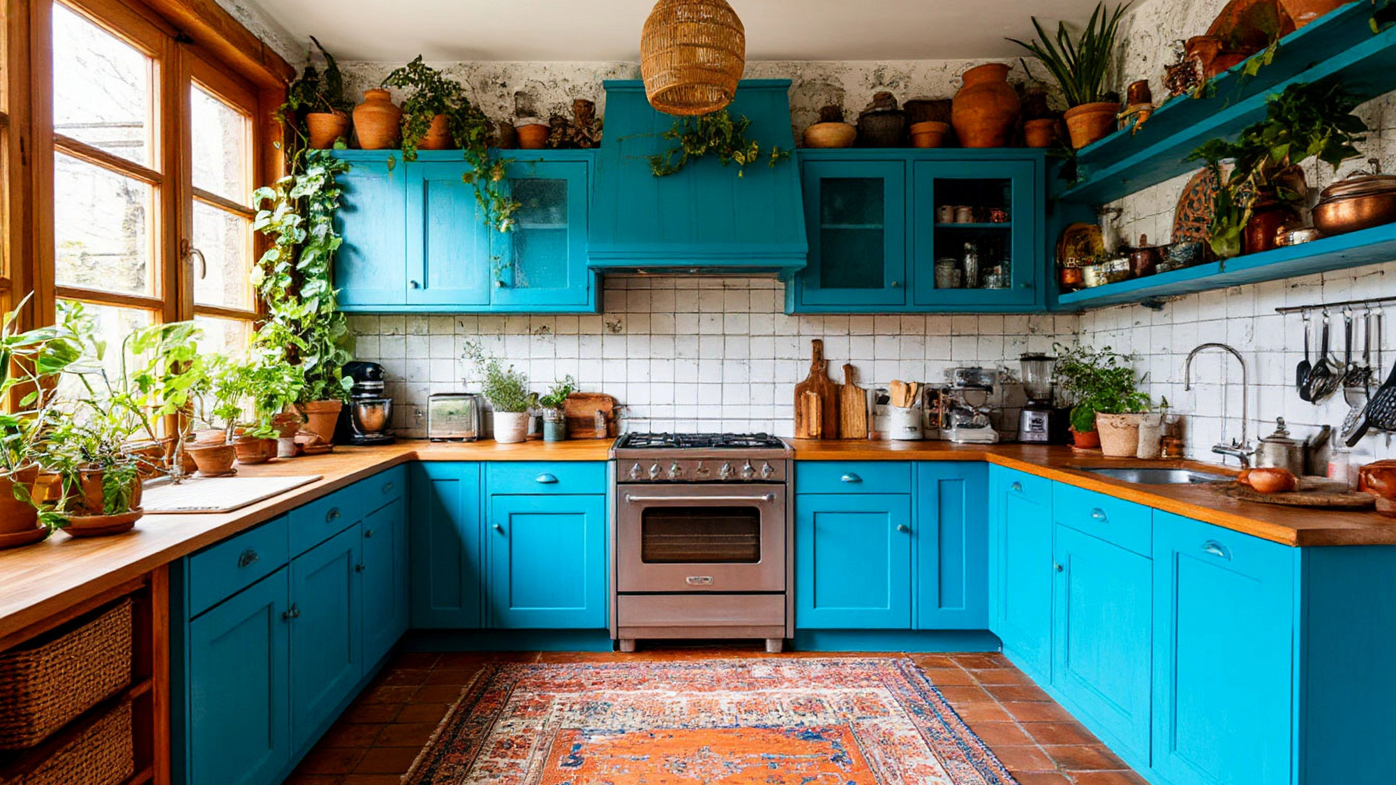 Кухня в голубом цвете всегда будет оставаться свежей и актуальной. Голубой оттенок способен расширять пространство, наполнять его воздухом, а в сочетании с декоративными элементами в стиле бохо он раскрывается еще ярче. Это решение для тех, кто хочет, чтобы кухня стала местом вдохновения, где рождаются новые идеи и теплые воспоминания.