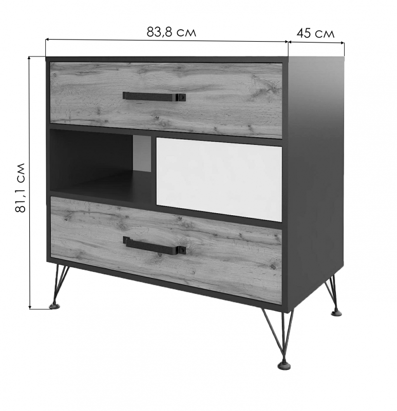 Комод Нобира антрацит / дуб ирландский (83,8x45x81,1).