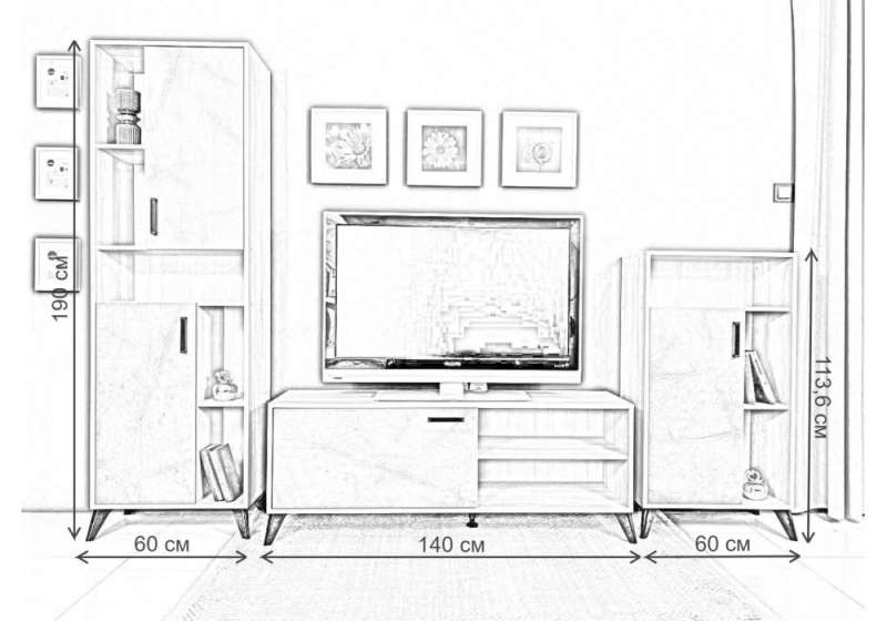 Готовые гостиные Алди дуб сонома / каспий темный ().