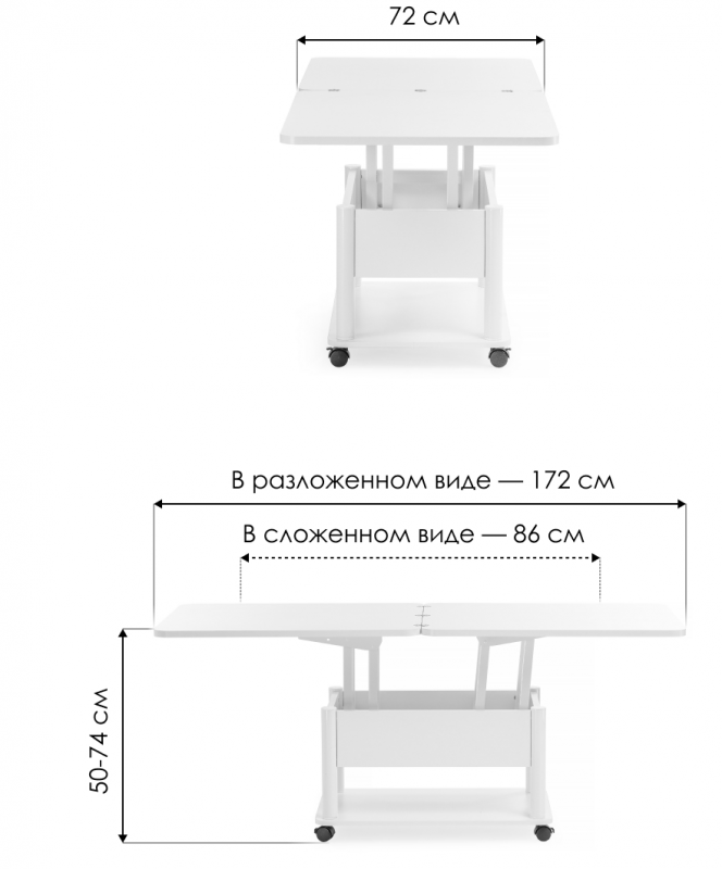 Стол-трансформер Виват 86(172)х72х50(74) дуб вотан / черный ().