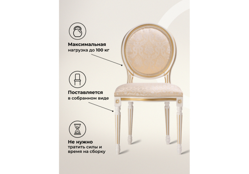 Стул деревянный Данте молочный / золотая патина (51x55x96)